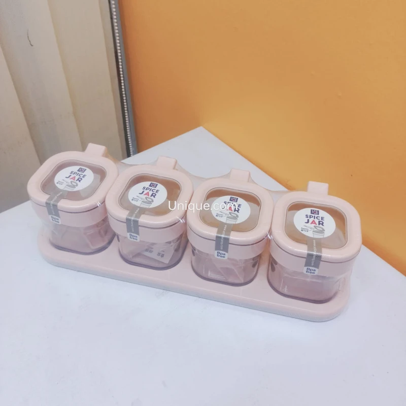 • 4-in-1 Set: Includes 4 spice jars with lids — perfect for salt, sugar, oil, sauce, and more.